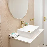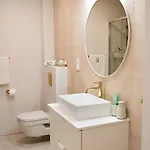 Das Apartment In Pobierowo Near Baltic Sea verfügt über ein Badezimmer mit einem Haartrockner. Außerdem gibt es hier eine getrennte Toilette und eine Dusche.
